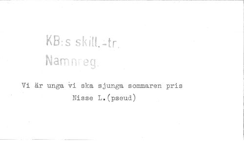 //// KB:s sML-tr. Narn //// r //// Vi är unga vi ska sjunga sommaren pris Nisse L.(pseud)