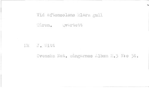 //// Vid aftonsolens klara gull //// 'Jåren. //// I.l( J. Witt //// ^vartett //// Svenska Nat. sångames Album H.3 N:o 34.