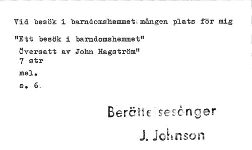 //// Vid besök i barndomshemmet mången plats för mig //// "Ett besök i barndomshemmet" //// översatt av John Hagström" //// 7 str //// mel. //// s. 6 //// Berctt€ t^enger //// J. Johnson