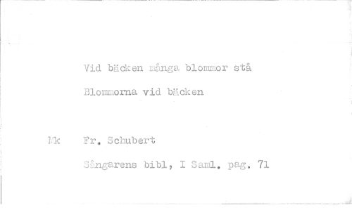 //// Vid bäcken många blommor stå Blommorna vid bäcken //// Fr. Schubert //// Sångarens bibi, I Sarnl. pag. 7