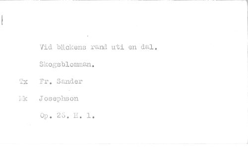 //// Vid bäckens rand uti en dal. Skogsblomman. //// Fr. Sander Josephson Op. 26. Ii. 1.