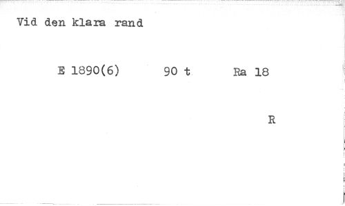 //// Vid den klara rand //// E 1890(6) 90 t Ra 18 //// R