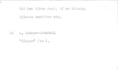 //// Vid den klara rand, af en blommig Björken berättar etc. //// A, Backer-Gröndahl "Sången" N:o 2.