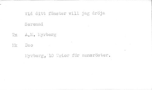 //// Vid ditt fönster vill jag dröja //// Serenad //// A.K. Lyrberg //// D:o //// Hyrberg, 10 Trior för mansröster.