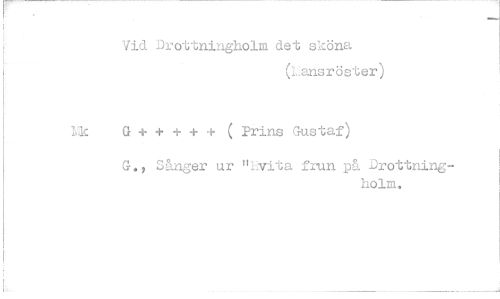 //// Vid Drottningholm det sköna //// (l. ansröster) //// G + + + + + ( Prins Gustaf) //// G., Sånger ur "Evita frun på Drottningholm.