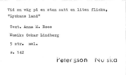 //// Vid en väg på en sten satt en liten flicka "Lyckans land" //// Text. Anna M. Roos Musik: Oskar Lindberg 5 str. mel. s. 142 //// fe!er sson