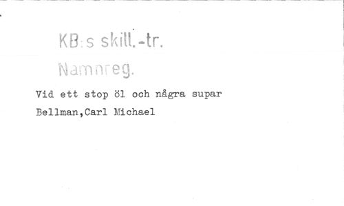 //// KBs sMt.-tr. Namnreg. //// Vid ett stop öl och några supar Bellman,Carl Michael
