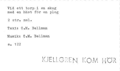//// Vid ett torp i en skog med en häst for en plog //// 2 str. mel. //// Tex.t: C.M. Bellman //// Musik: C.M. Bellman //// s. 122