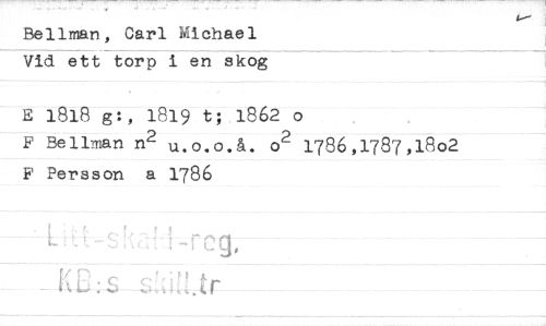 //// Bellman, Carl Michael Vid ett torp i en skog //// E l8l8 g:, 1819 t; 1862 o F Bellman n^ u.o.o.å. 1786,1787,1802 F Perason a 1786
