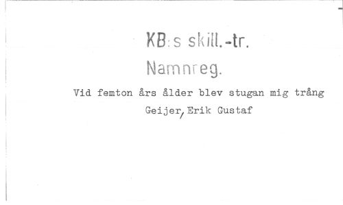 //// KB.sskiit.-tr. //// Namnreg. //// Vid femton års ålder blev stugan mig trång Geijer,Erik Gustaf