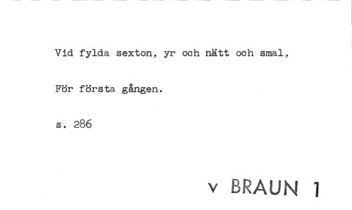 //// Vid fylda sexton, yr och nätt och smal, För första gången, s. 286 //// v BRAUN 1