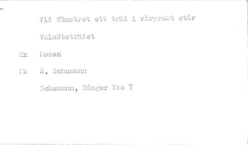 //// '1 //// Vid fönstret ett träd i vårprakt står Valnötsträdet I'x Nosen I,k R, Schumann //// Schumayin, Sånger N:o 7 //// j