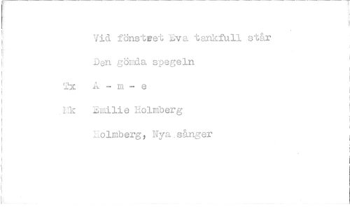 //// Vid fonstset Eva tankfull står Dgn gömda spegeln A - m - e Endlie Holmberg holmberg, Nya sånger