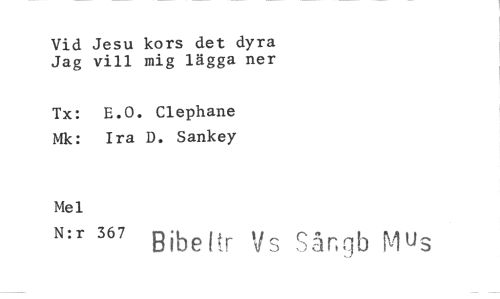 //// Vid Jesu kors det dyra Jag vill mig lägga ner //// Tx: E.O. Clephane Mk: Ira D. Sankey //// Mel //// ^ Bibettr Vs Sångb