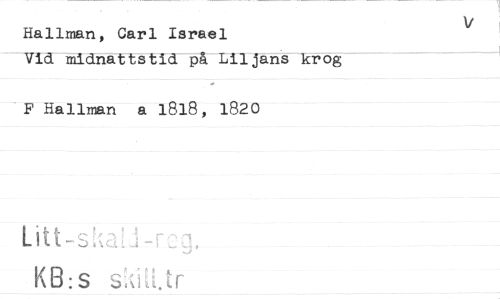 //// Hallman, Carl Israel //// Vid midnattstid på Liljans krog //// F Hallman a l8l8, 1820