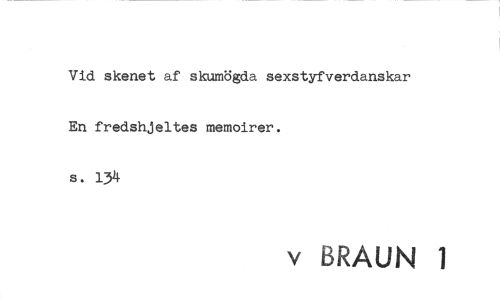//// Vid skenet af skumögda sexstyfverdanskar En fredshjeltes memoirer. s. 134 //// v BRAUN 1