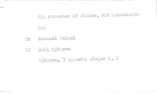 //// Vid stranden af floden, vid I.anzanares D:o //// Tx Emanuel G-eibel Lk Emil Sjögren //// Sjögren, 7 spanska s&nger B. 2
