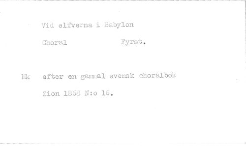 //// Vid elfverna i Babylon Choral Fyrst. //// efter en gantial svensk choralbok Zion 1868 N:o 16.