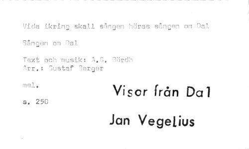 //// Vida ikrino skaH singcn höras a&ngon on Oa i //// SånQon om ^al //// Text och musik: .1.1. lördh "rr.: lustaf Terger //// Visor från Dal //// s. 250 //// Jan Vegetius