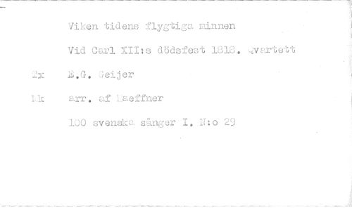 //// Viken tidens flygtiga Binnen Vid Carl XII:s dödsfest 1810. //// Jeijer arr. af Laeffner //// 100 svenska sånger I. N:o 29