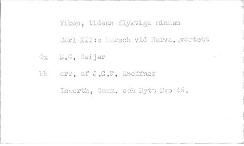 //// Viken, tidens flyktiga :ainnen Jarl XII:s ILarsch vid Marva. .^vårtet* E.G. Saijer //// arr. af J.C.F. Eaeffner Lowerth, Gatan, och Nytt H:o 46.