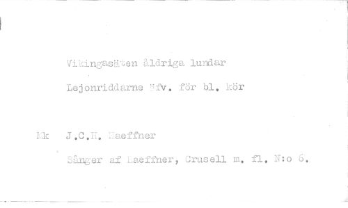 //// t //// Vikingasäuen åldriga lundar Lejonriddarne '-fv. för bl. kör //// U<: J.G.II. ,'aeffner //// 3ån^-'er af Laeffner, Orusell m. fl. N:o 6.