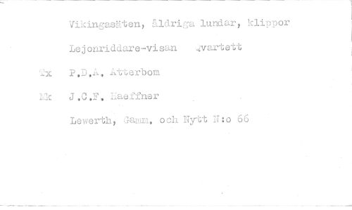 //// Vikingasäten, åldriga lundar, klippor Lejonriddare-visan ^vartett *x P.D.A. Atterbom J.O.f, Haeffner Lev/erth, Ganmi, och Nytt N:o 66