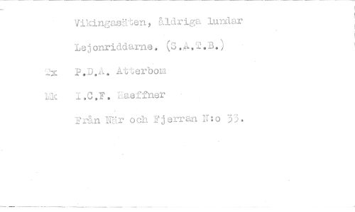 //// Vikingasåten, åldriga lundar //// Lejonriddame. (3.A.T.B,) //// P.D.A. Atterbom //// I.C.F. Haeffner //// Fiå.n När och Fjerran N:o 33.
