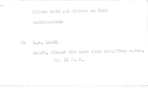 //// Viktor satt och ritade en häst Barnksnmaren //// Mk L.A, Lundh //// Lundh, Såjnger för barn utan acc.åfven m.acc. Op. 12 H. 2.