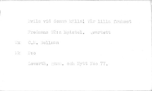 //// hvila vid denna källai Var lilla frukos //// Fredmans 32:a Kpistel. ..'x C,L. Bellman k D:o //// .^vartett //// Lewerth, och Nytt H:o 77.