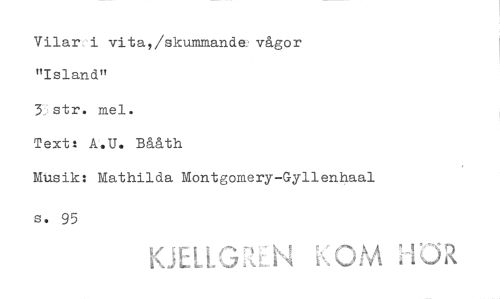 //// Vilar i vita,/skummande- vågor "Island" //// 3 str. mel. //// Text: A.U. Bååth //// Musik: Mathilda Montgomery-Gyllenhaal s. 95