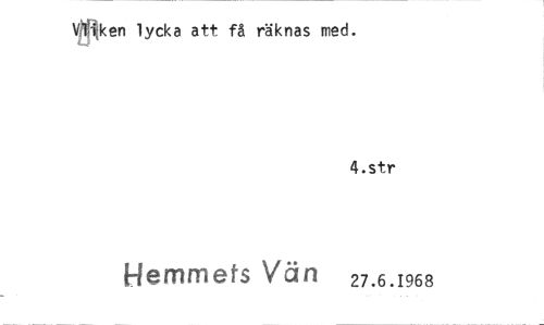 //// V^ken lycka att få räknas med. //// 4.str //// {-{emmefsVän 27.6.1968