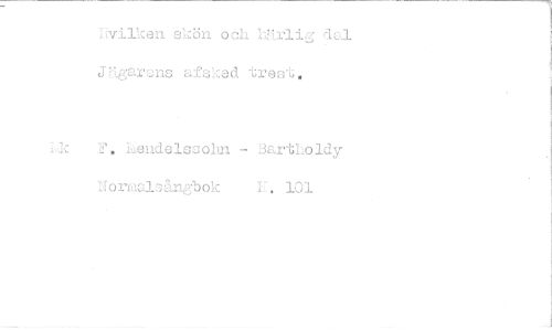 //// ;.vilken skön och Mrlig dal Jägarens afsked trest. //// !.k F. kendelssohn - Sartholdy Nornalsångbok F. 101 //// 1