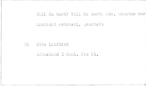 //// Vill du bort? Vill du bort? Ack, minuten var erotiskt svärmeri, ^vartett //// Otto Lindblad //// Odinelund I Sami. N:o 21,