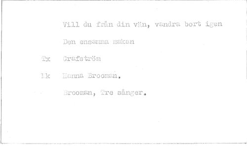 //// Vill du från din vån, vandra bort igen Den ensamma makan l'x Grafström 'i.k nanna Brooman, //// Brooman, Tre s&nger.