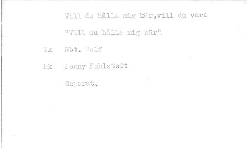 //// Vill du hålla, mig kär,vill du vara "Vill du h&lla mig kär". //// Tx Rbt. Tolf //// I..k Jemiy Fslilstedt Separat,