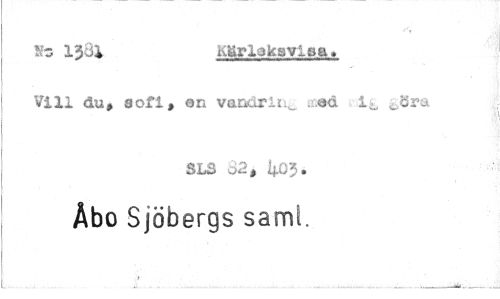 //// $h 133^ KärlakaviBA. //// Vill du# a of i, en vandrln^, eiad //// SL3 d2, ^03. //// Åbo Sjöbergs samt.