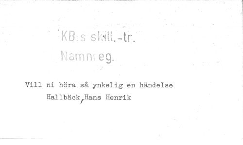 //// KB:s sM^.-tr. famnreg. //// Vill ni höra så ynkelig en händelse Hallbäck^Hans Henrik