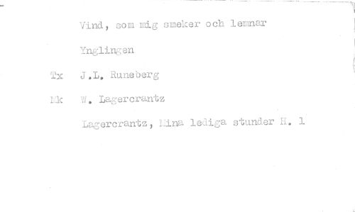 //// Vind, som mig smeker och lemnar Ynglingen J.L. Runeberg W. Lagercrantz //// Lagercrantz, I j.na lediga stunder H.