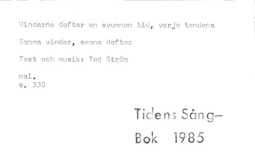 //// Vindarna doftar en svunnen tid, varje tendens //// Samma vindar, samma dofter //// Text och musik: Ted Ström //// mal, s, 330