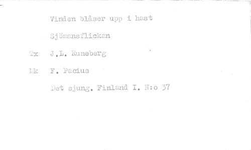 //// Vinden blåser upp i Sjomansflickan '^'x J.L. Runeberg 1.^ F. Pacius //// Det sjung. Finland I //// hast //// . N:o 37