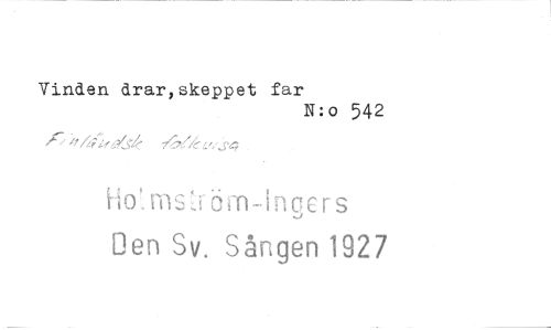 //// Vinden drar,skeppet far //// N:o 542 //// Ho' ms j öm-incers Oen Sv. Sången 1927