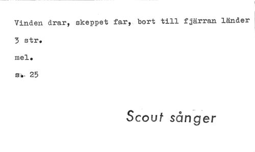 //// Vinden drar? skeppet far? bort till f jjärran länder 3 str. mel. s. 25 //// Scouf sånger