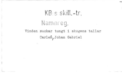 //// KB s sMt.-tr. //// Namnreg. //// Vinden suckar tungt i skogens tallar Carlen^Johan Gabriel