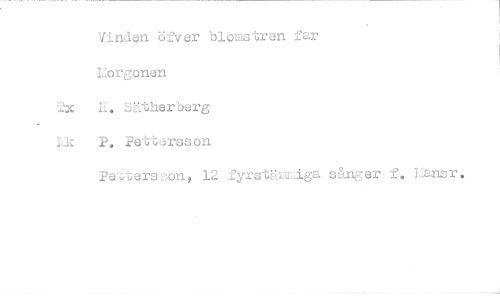//// Vinden öfver blomstren far Morgonen Tx E. Sätherberg IJ: p, Pettersson //// Pettersson, 12 fyrstämniga sånger f. I,iansr.