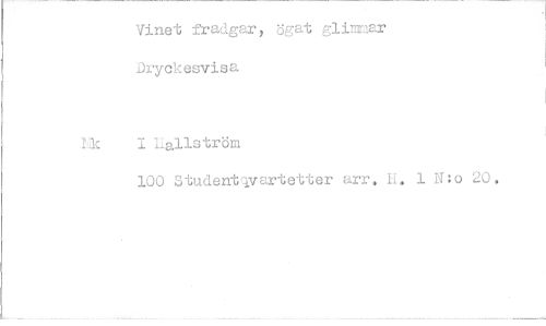 //// Vinet fradgar, ögat glimmar Dryckesvisa //// I liallström //// 100 Student(ivartetter arr, H