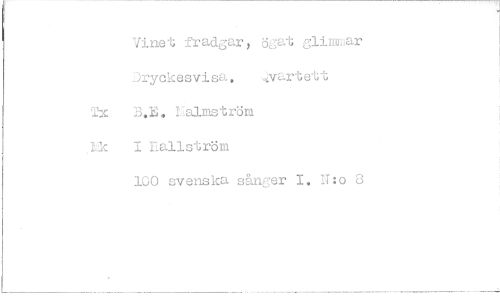 //// Vinet fradgar, ggat glimsar Dryckesviss.. ^vartett B.E. Halmström //// I Hallström //// ICO svenska smiger I. 11: o 8