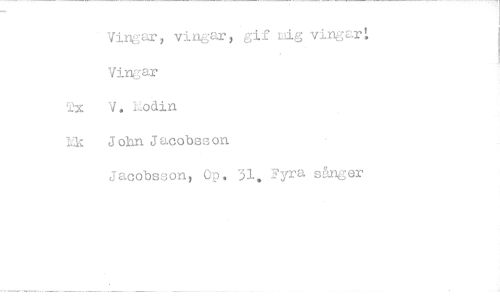 //// Vingar, vingar, gif nig vingar //// Vingar //// V. hodin //// John Jacobsson //// Jacobsson, Op. 31. Fyra s&nger