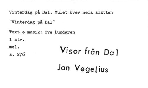 //// Vinterdag på Dal. Mulet över hela slätten //// "Vinterdag på Dal" //// Text o musik: Ove Lundgren 1 str. //// 1^76 Visor från Dal Jan Vegeiius