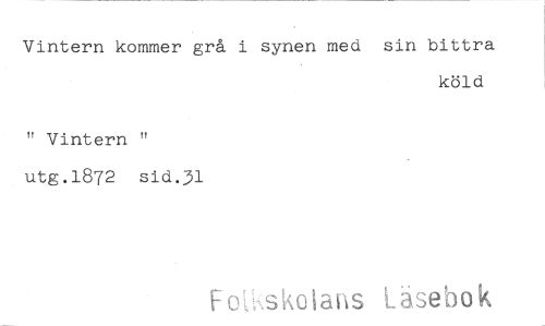 //// Vintern kommer grå //// " Vintern utg.1872 //// t! //// sid.31 //// synen med sin bittra //// köld //// skoians Läsebok